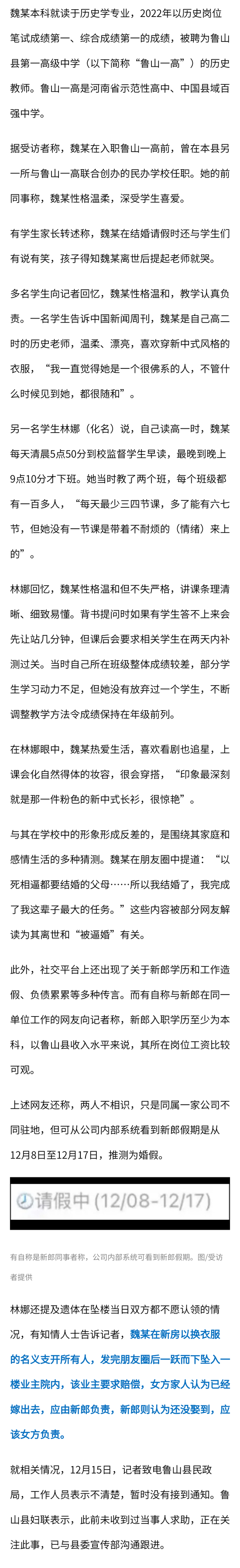 点击进入专题: 28岁高中女教师新婚当天坠亡相关文章