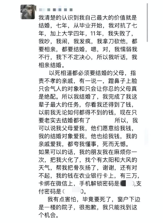 魏某的朋友圈遗言在网上流传。